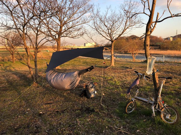 今年の3月初旬頃のお話。とある河原でお忍びハンモックキャンプをやってみました。