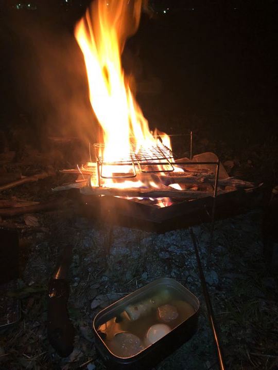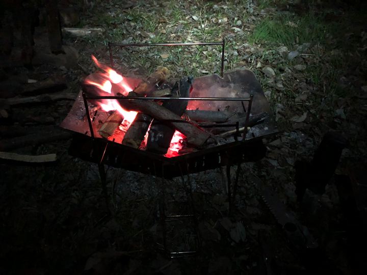 焚火はエンバーリットからピコグリルに移動して手羽先を焼きます。うみゃ〜!