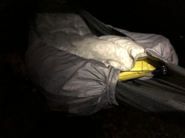 寒いから、ダウン着物をシュラフモードに変えて、最強エアマットを突っ込んで、もうダメ、ばたんQ。