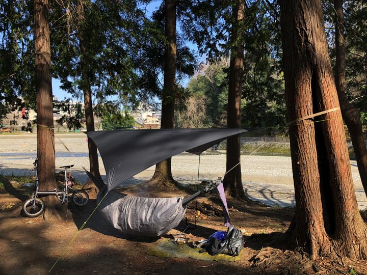 今年の3月中旬頃のお話。久々に飯能河原の別荘でハンモックキャンプをしてみたのですが・・・。