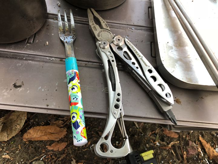 ちびっこの忘れ物フォークかわええ。レザーマンと並べるとひときわ可愛さ丸出し。