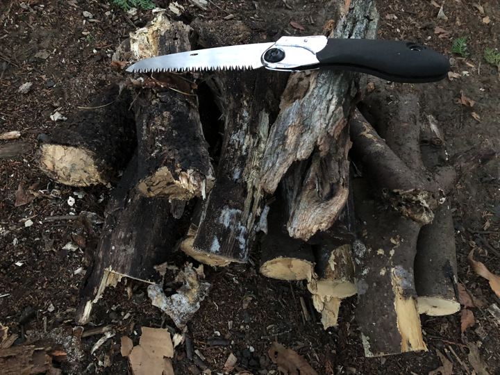 落ち枝の場合はバトニングより、ノコでギコギコ。