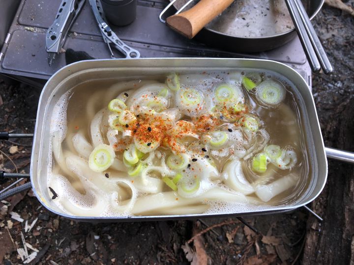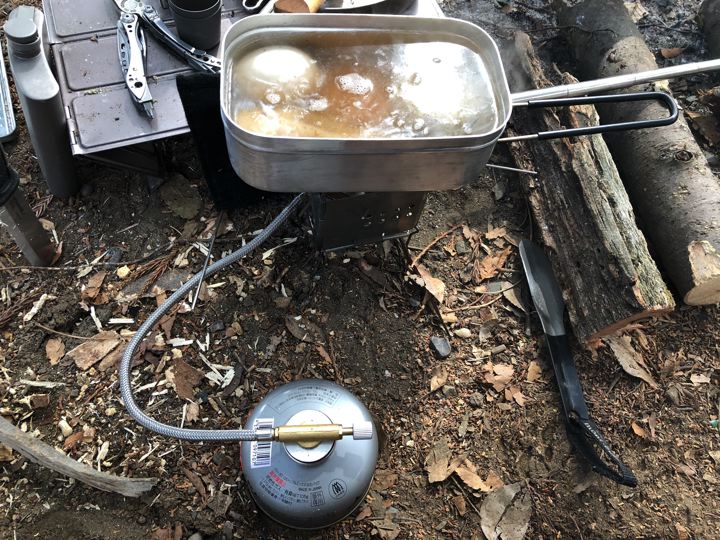 そしてメスティンで朝おでん!うみゃ〜!(暖まるし〜)