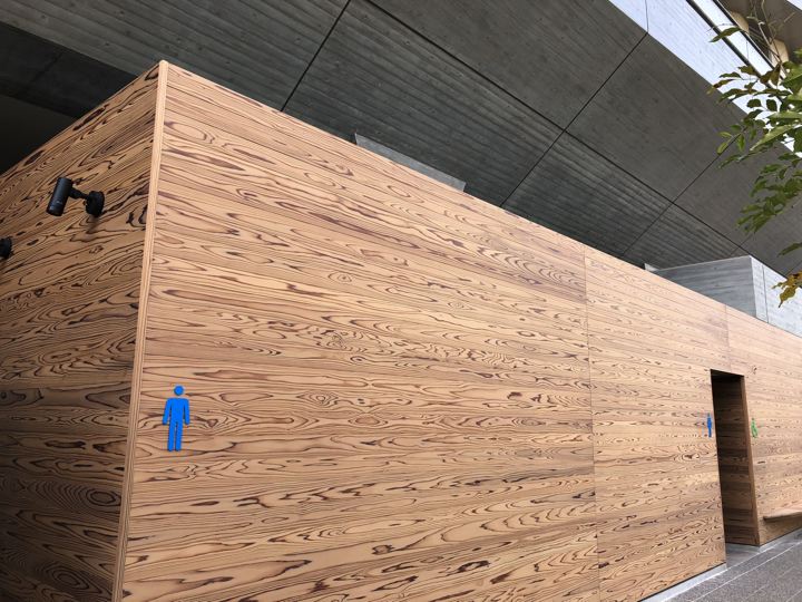 構造用合板の公共トイレもいい感じ。