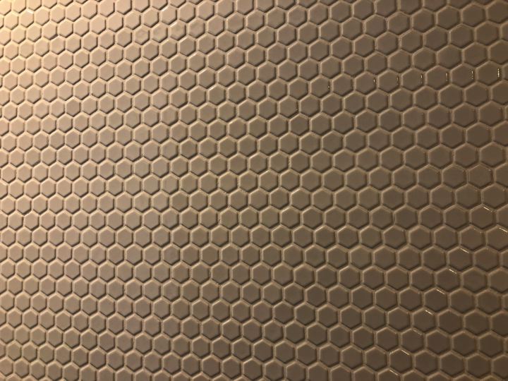 この壁の磁器タイルええな。とか。