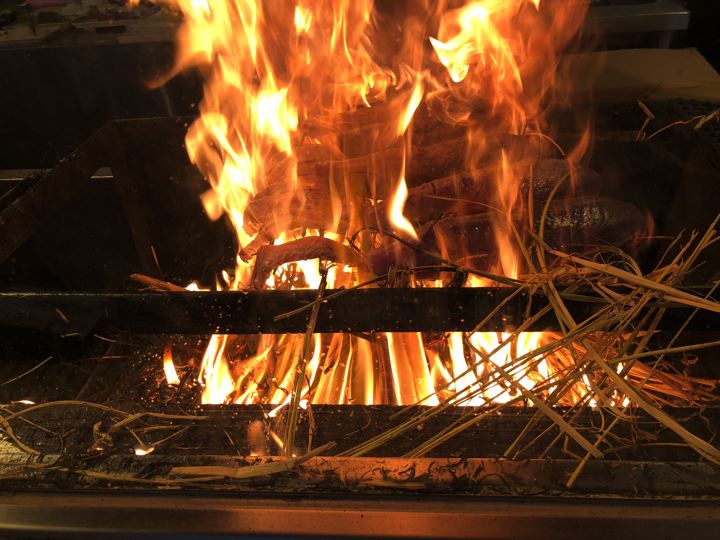 本物の鰹のタタキ。藁で炙ります。