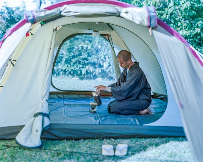 着物でキャンプもなかなかかっこいい。