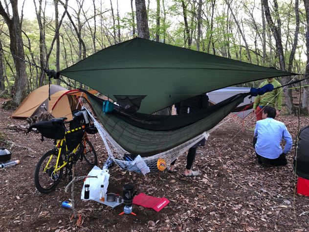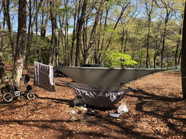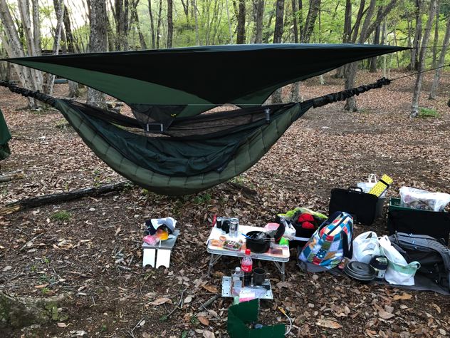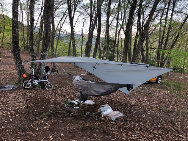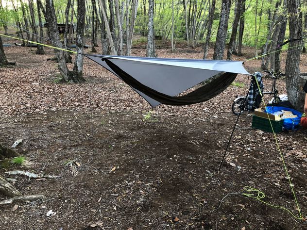 今回はスケスケのシートゥサミットULハンモックにニンジャタープの組合せにて。