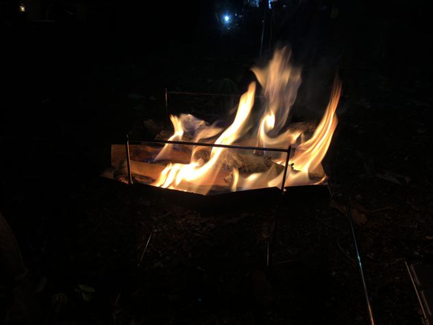 ピコグリルで焚火開始。楽チン。