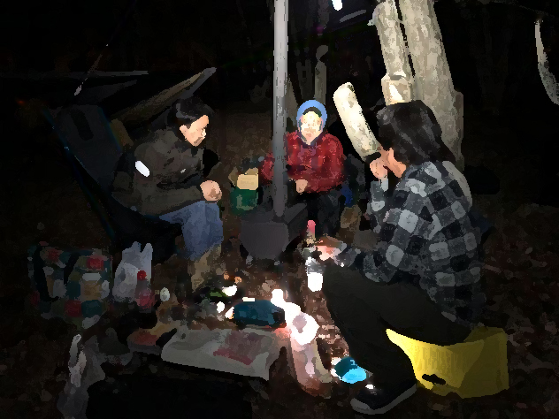 やっぱり薪ストーブには人が集まる。暖かい。