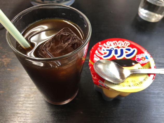 更に謎のアイスコーヒーとプリンが無料サービス。