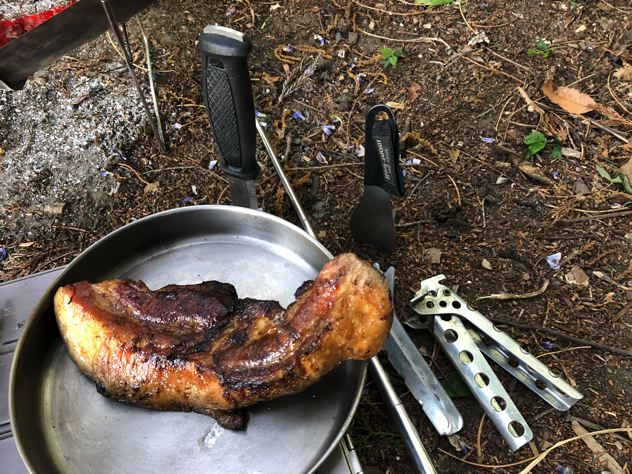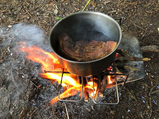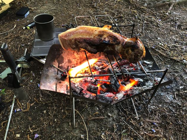 その後ピコグリル398の焚火で遠目の熾火でじっくり焼きます。