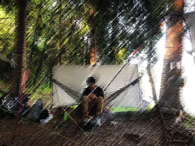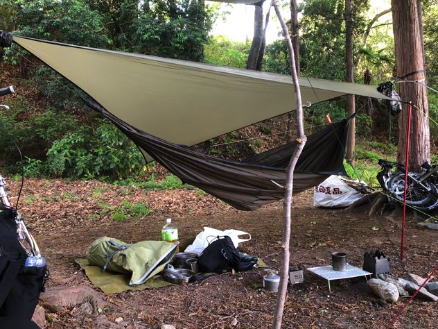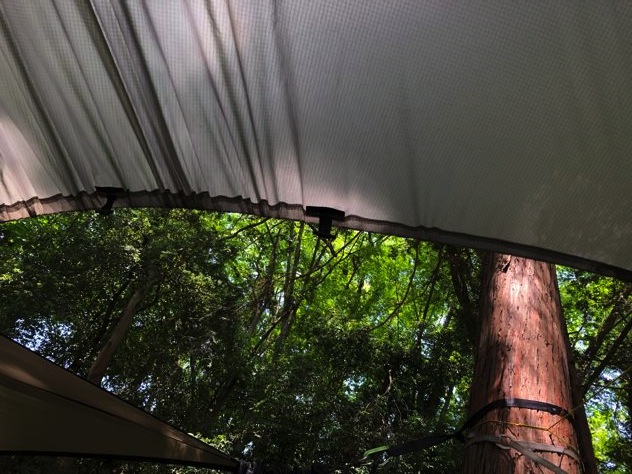 ニンジャタープをもう一度よく見る。ドローコードで絞れたりして変幻自在のアレンジも出来てやっぱりいいですね。もう少し軽くて小さくなれば最強なのだが・・・