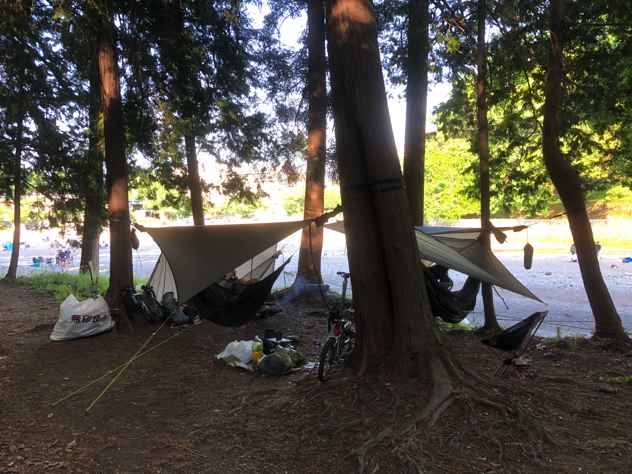 リョウさんsatomiさんご夫妻と合流して、さささとハンモック村を形成。