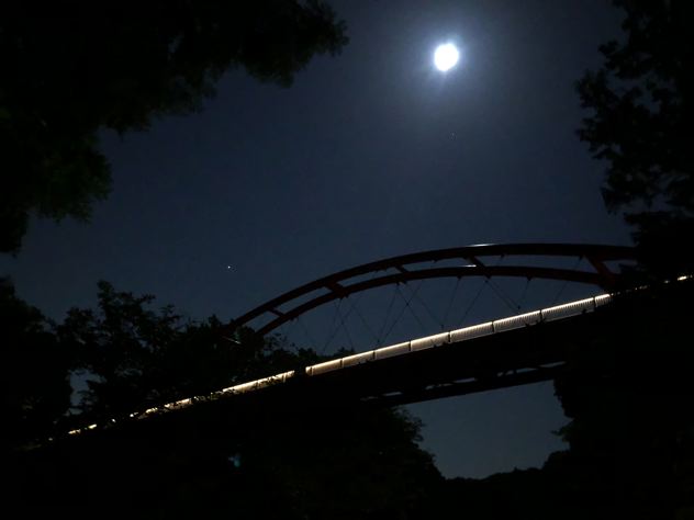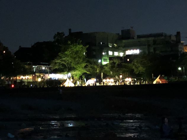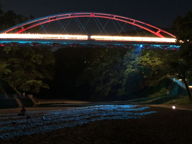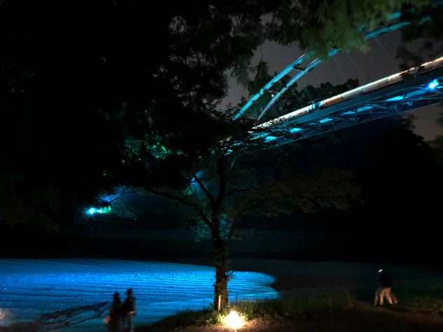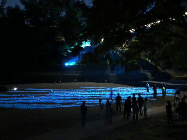 割岩橋のライトアップと下の河原にもプロジェクションマッピング。幻想的〜。ここでこんなものが見られるとは、しびれゔぁ!