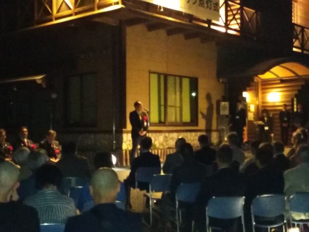 日が暮れてライトアップの式典が開催。ミスターがレポート。