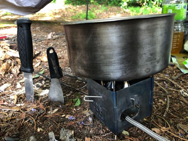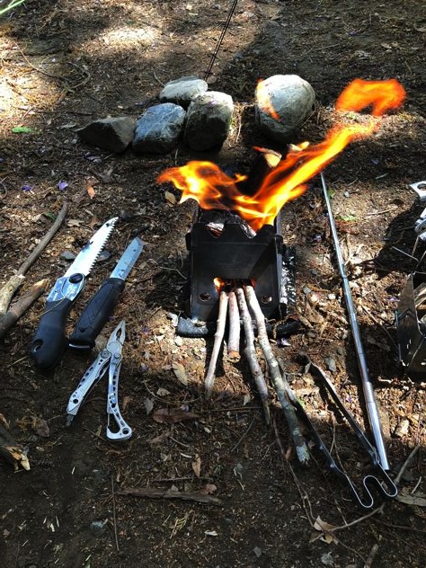 そしてまたエンバーリットで焚火。ポケットボーイ、ガーバーグ、レザーマン、ポケットブロワーV3とオールスターが勢揃い。