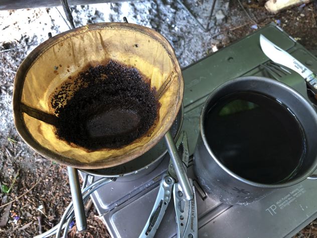 いつもの様にモンベルドリッパーでモーニングコーヒーを飲み・・・