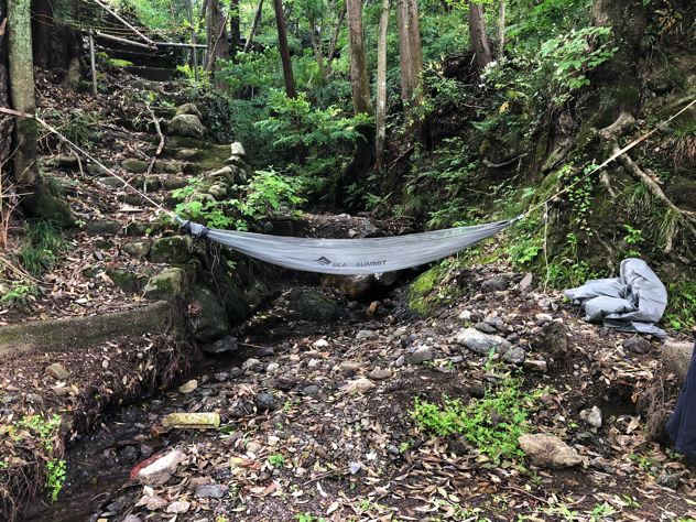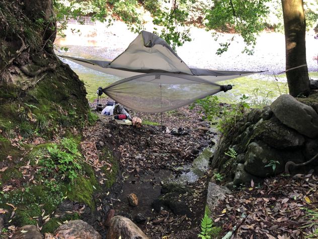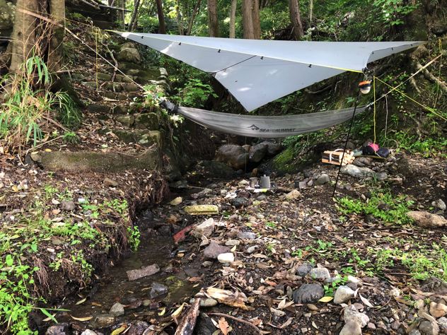 今回はスケスケシートゥサミットのULハンモックにニンジャタープにて。