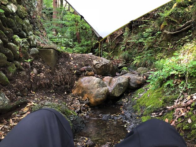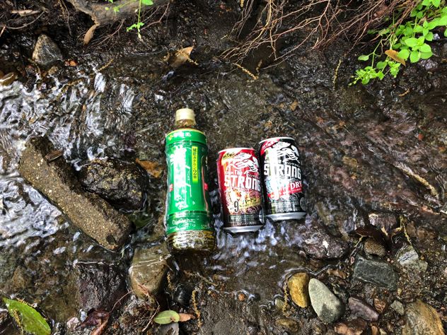 沢またぎならではの足元の天然冷蔵庫へ飲み物を冷やします。