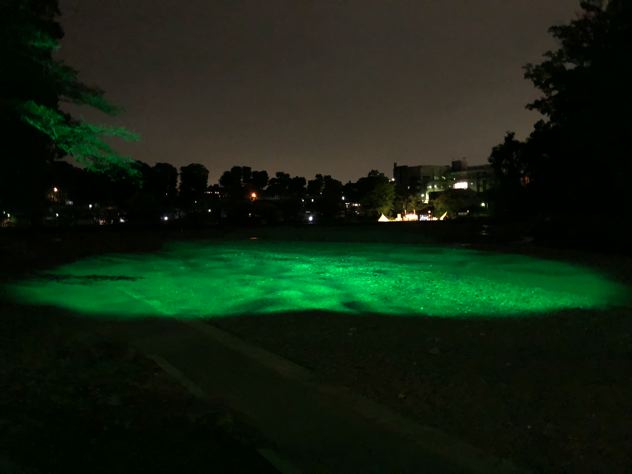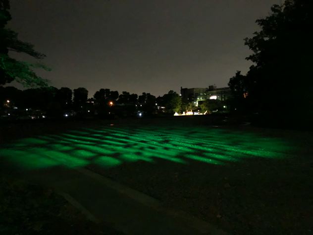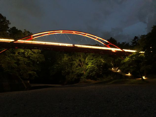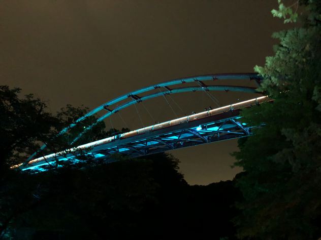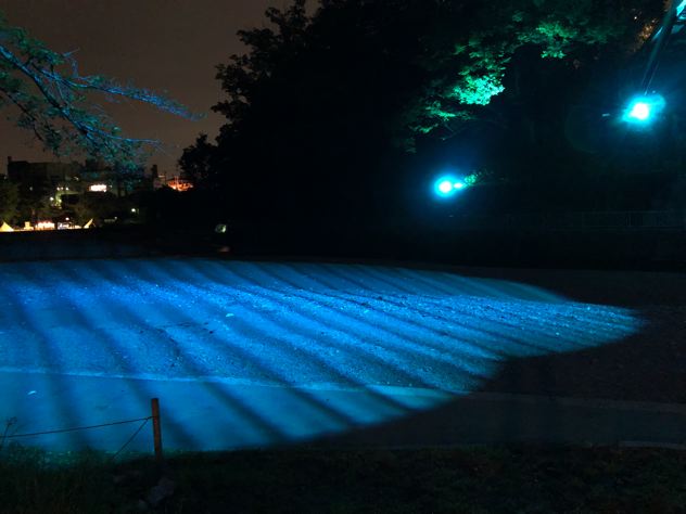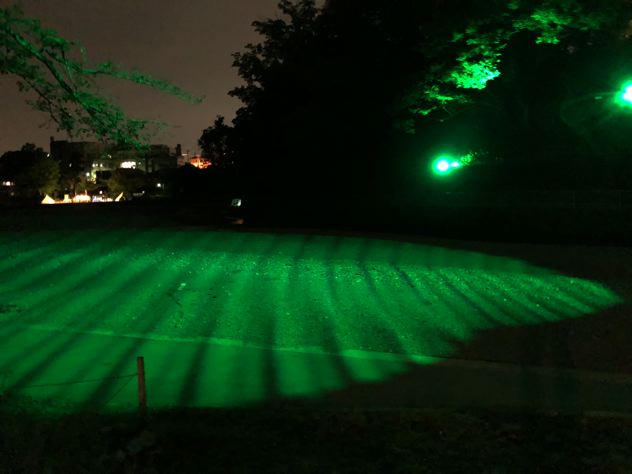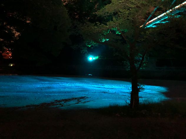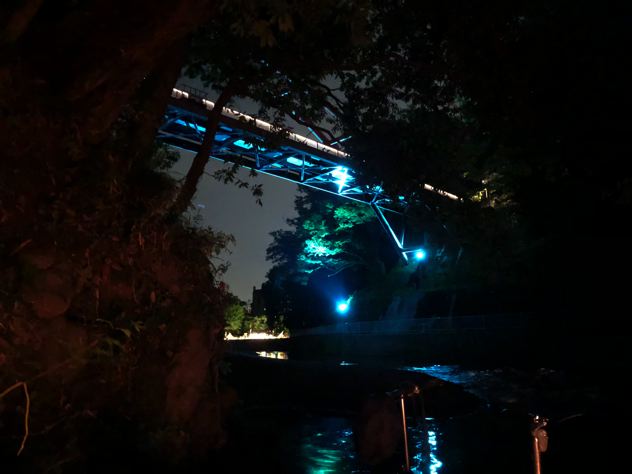 満足したのでプロジェクションマッピングを鑑賞しつつ沢またぎハンモックに戻ります。