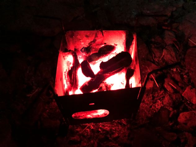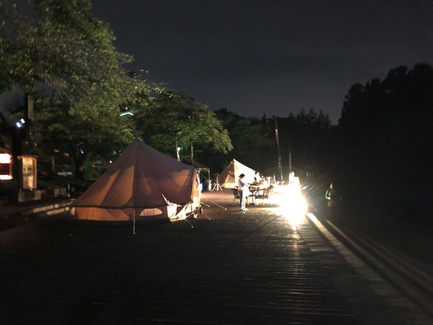 むむぅ。これは急遽、グランピングじゃ!お昼時だったのでここで食べちゃえ。