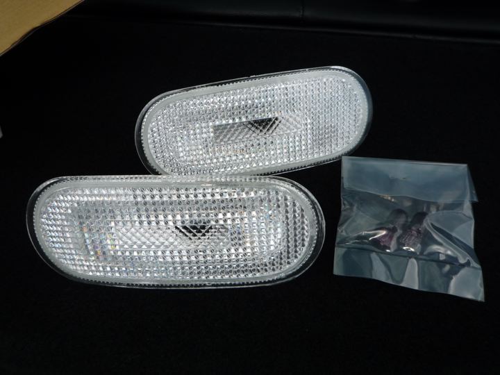 ホワイトレンズ仕様のリアサイドマーカーライト左右2個セットです。マイナスドライバー1本で誰でも簡単に標準のVW純正リアサイドマーカーライトと交換が可能です。オレンジバルブが2個付属されており点灯時は淡いオレンジ色に光ります。赤い点灯をご希望の方は別売りレッドウェッジバルブ2個セット(¥972)もございます。こちらの製品は2005年までのニュービートルと、ニュービートルカブリオレのリアサイドマーカーにフィット。また2003年から2005年までのターボボディーにはリアサイドマーカーだけでなくフロントコーナーライトもこのレンズにスワップが可能です。(BUGS GO-GOさんの解説より)