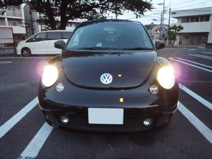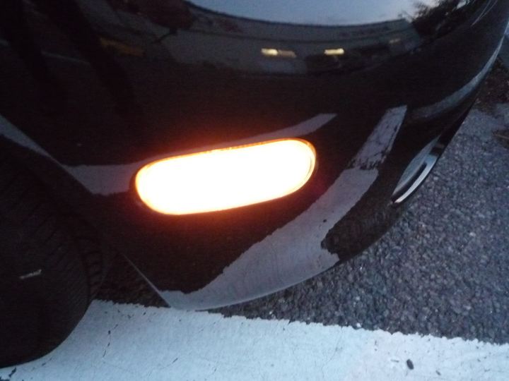 交換したフロントコーナーライト。昼間は白でも夜は黄色に光ります。