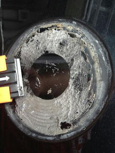 マイナスドライバーを雑巾でくるんで、ほじほじ。