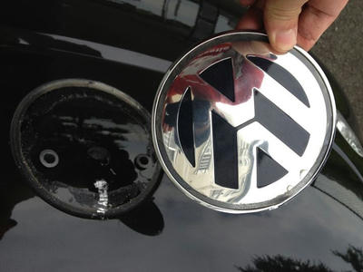 そこで、VWエンブレムを、じぃ〜っと見つめてみた。
