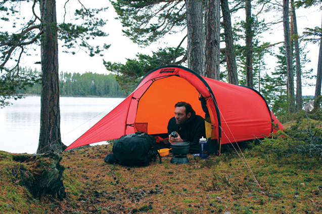 大きなフライは、ポールや棒を使えばキャノピーとしても使用可能。雨の中でのクッキング時に活躍。3シーズン、フリースタンディング、バックパック用テント。画期的なDACポールはアルミニウムからできており、最新技術で軽量かつ耐久性を強化 。