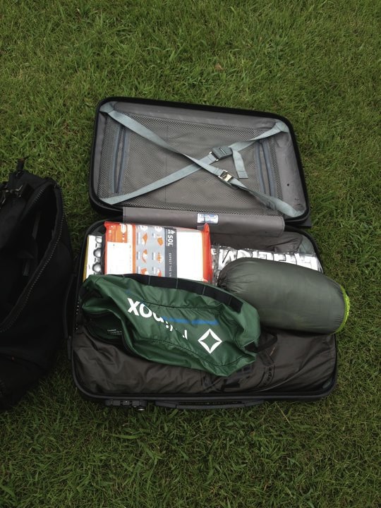 ちびっこリモワにキャンプ用品入れて、くろび〜で、ミスターと近くの公園へGO!