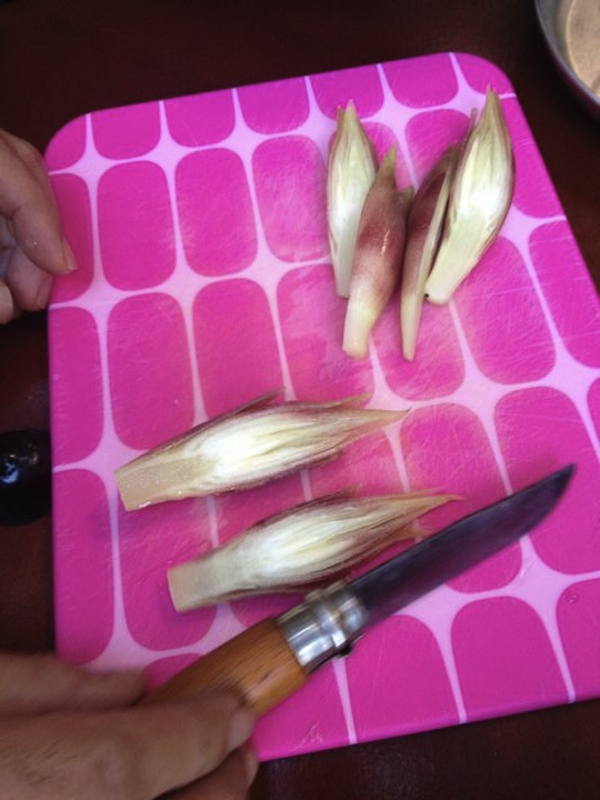 そしたら、なんとぉーっ!ゆったんが茗荷を切りだした!