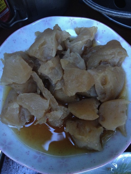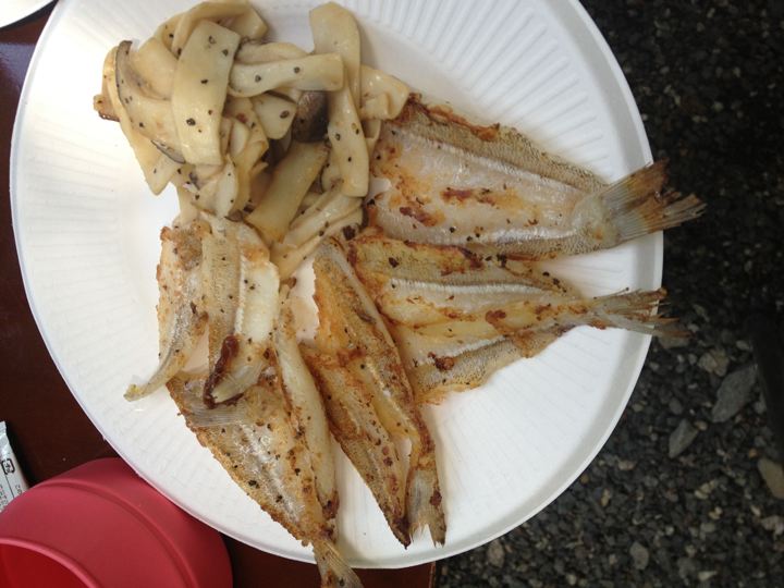 キャンプ場のおばちゃんが煮物をくれました。うみゃ〜!