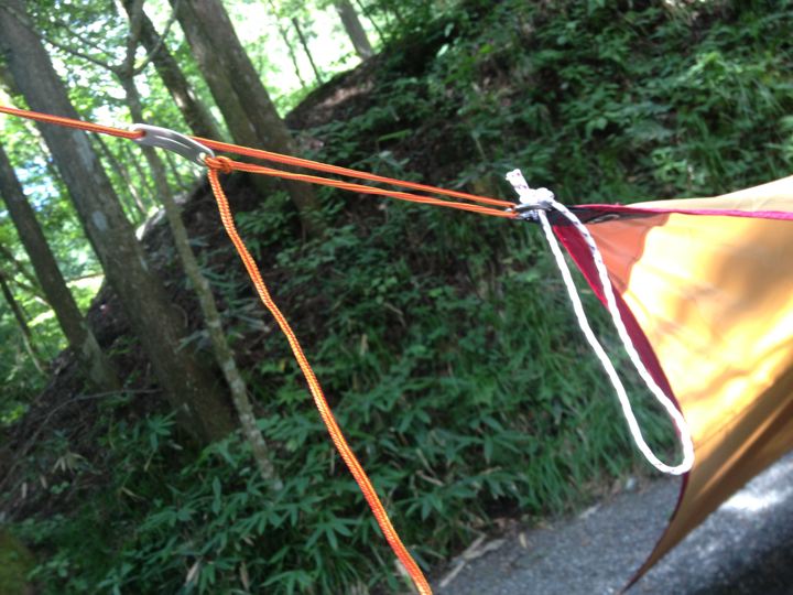 ははぁ。こんな金物でタープのヒモが引っぱれるのか。