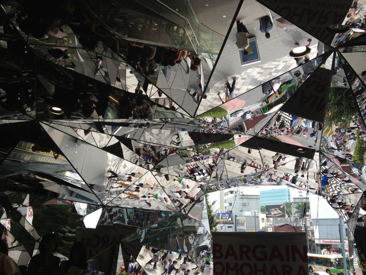 これが噂の街を乱反射するエントランス。むひ〜