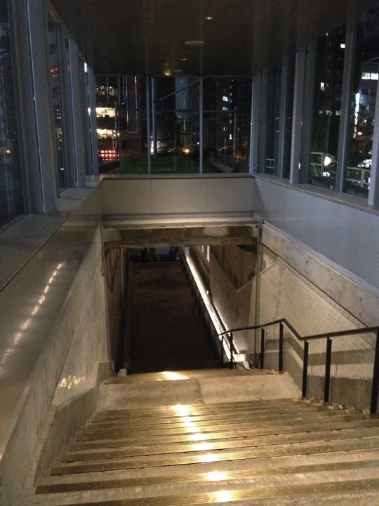 昔の万世橋のホームに上がると、秋葉原の街が見えます。