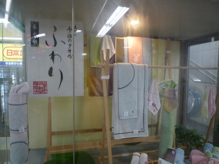 今治はタオルが有名。触ると確かにふわふわで気持ちいい。