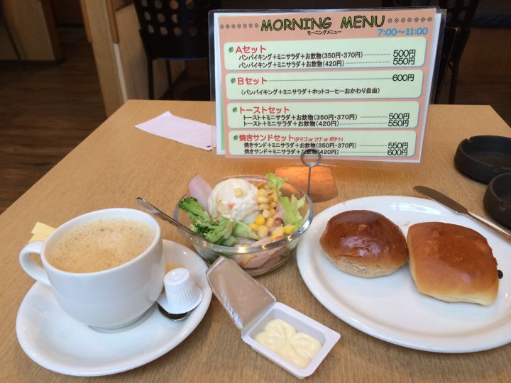駅のカフェでパンが食べ放題のモーニング食べて・・・