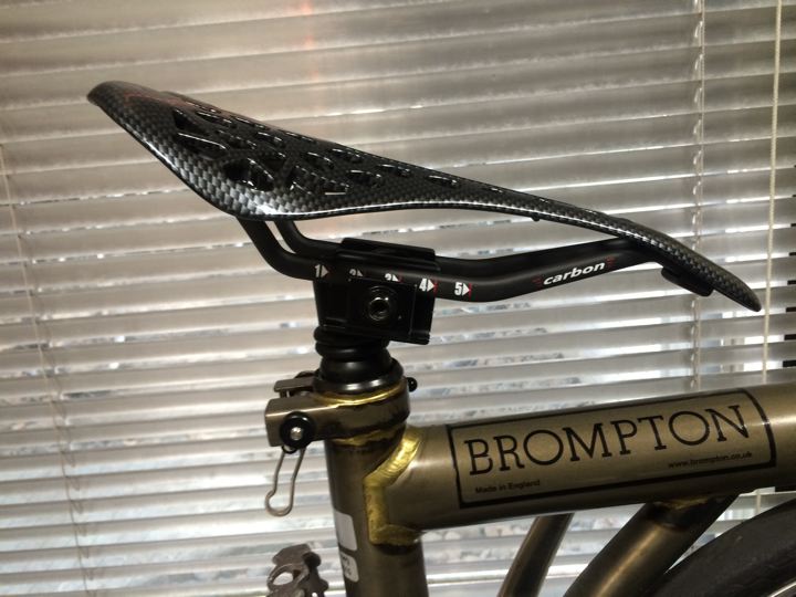 Brompton軽量化ラストスパートは一旦休憩!カーボンサドルのチタンレールとペンタクリップをブラックアウト!の巻