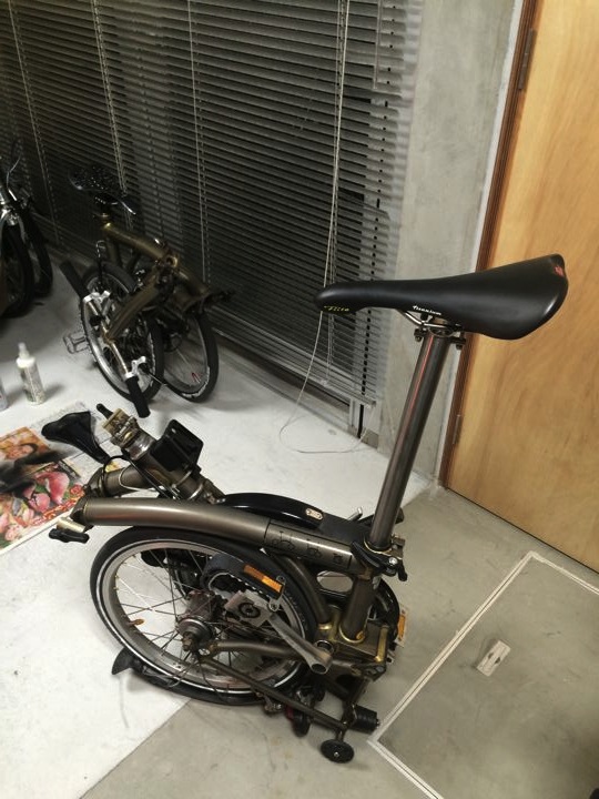芋焼酎飲みながらBrompton純正パーツのサドルハイトインサート取付け!