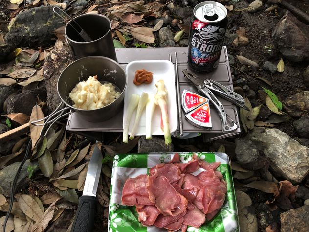 むむぅ。これは急遽、グランピングじゃ!お昼時だったのでここで食べちゃえ。