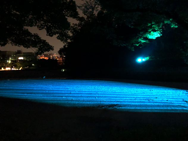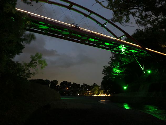 満足したのでプロジェクションマッピングを鑑賞しつつ沢またぎハンモックに戻ります。