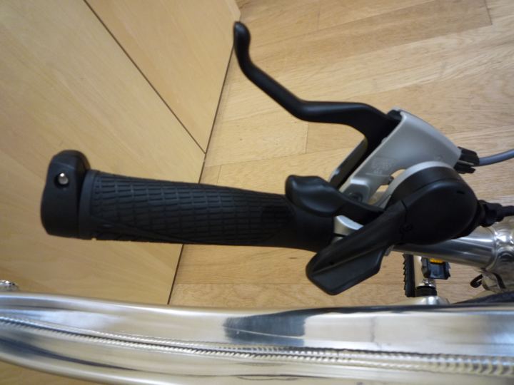 ペダルが妙に安っぽいが、スロースポットさんで聞いてみたら、通勤で使う人が多いらしく靴が傷まない様にこのペダルらしい。むむぅ。