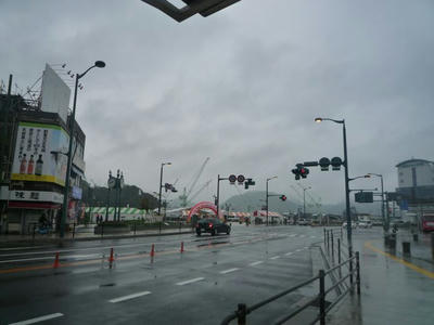 むくり。ホテルで目を覚ますと、お外は結構な雨でした。ぬ〜。