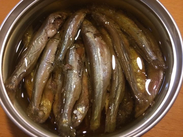 おつまみは琵琶湖産稚鮎の油漬。湯煎して食べる。