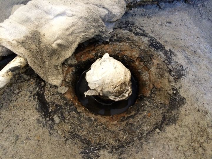 ジャンカか何かが出てしまったらしく施工会社としては補修したかったのでしょう。