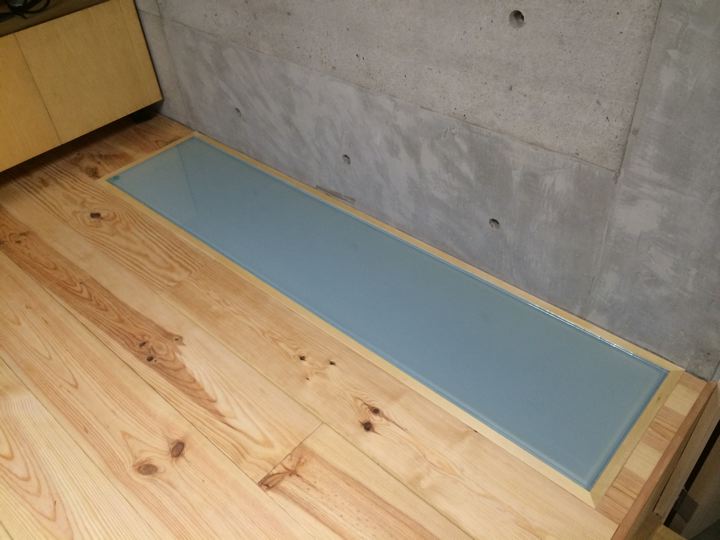 お仕事でいつもお世話になっている材料メーカーさんから、光散光シートなる新製品が出るからデモで使って欲しいとの事。早速お試しに貼ってみる事にしたのですが・・・。
