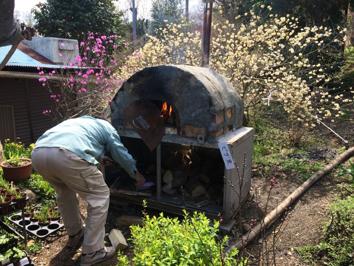 なぜかピザを焼いてます。
