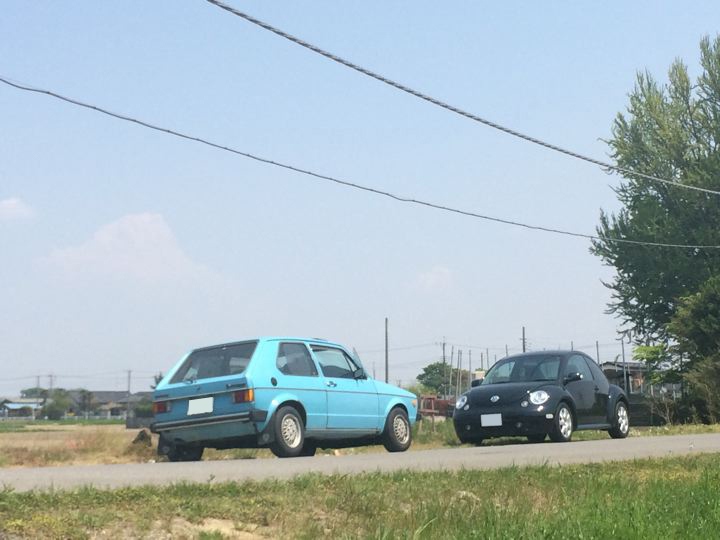 おか〜カラーの初代Golf1が!ここでミスターが撮影中は